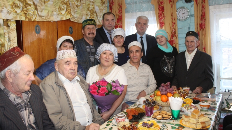 Поздравить труженика тыла и ветерана труда приехал заместитель главы Дрожжановского муниципального района Алексей Ярухин и глава Новоильмовского сельского поселения Роберт Дружков. Они поздравили ветерана с юбилеем и вручили поздравительную открытку от имени Президента РФ В.В.Путина и подарки от главы Дрожжановского муниципального района Марата Гафарова, пожелали здоровья.