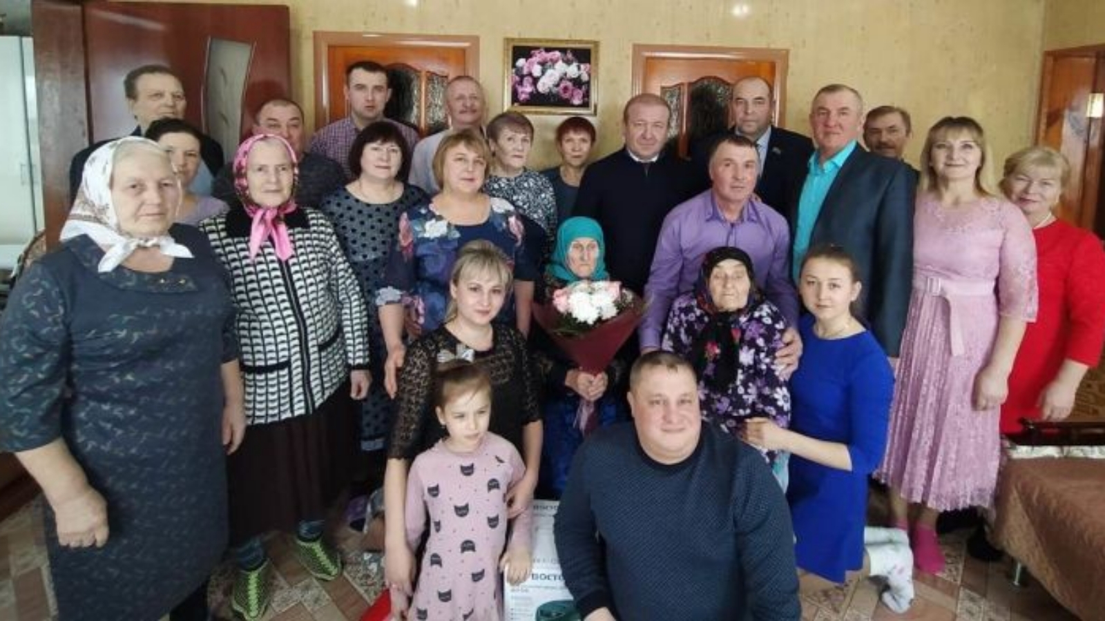 В этот день с такой знаменательной датой её поздравил Глава района Марат Гафаров. На день рождения любимой мамы приехали все дети, родные и близкие, а также пришли и соседи.