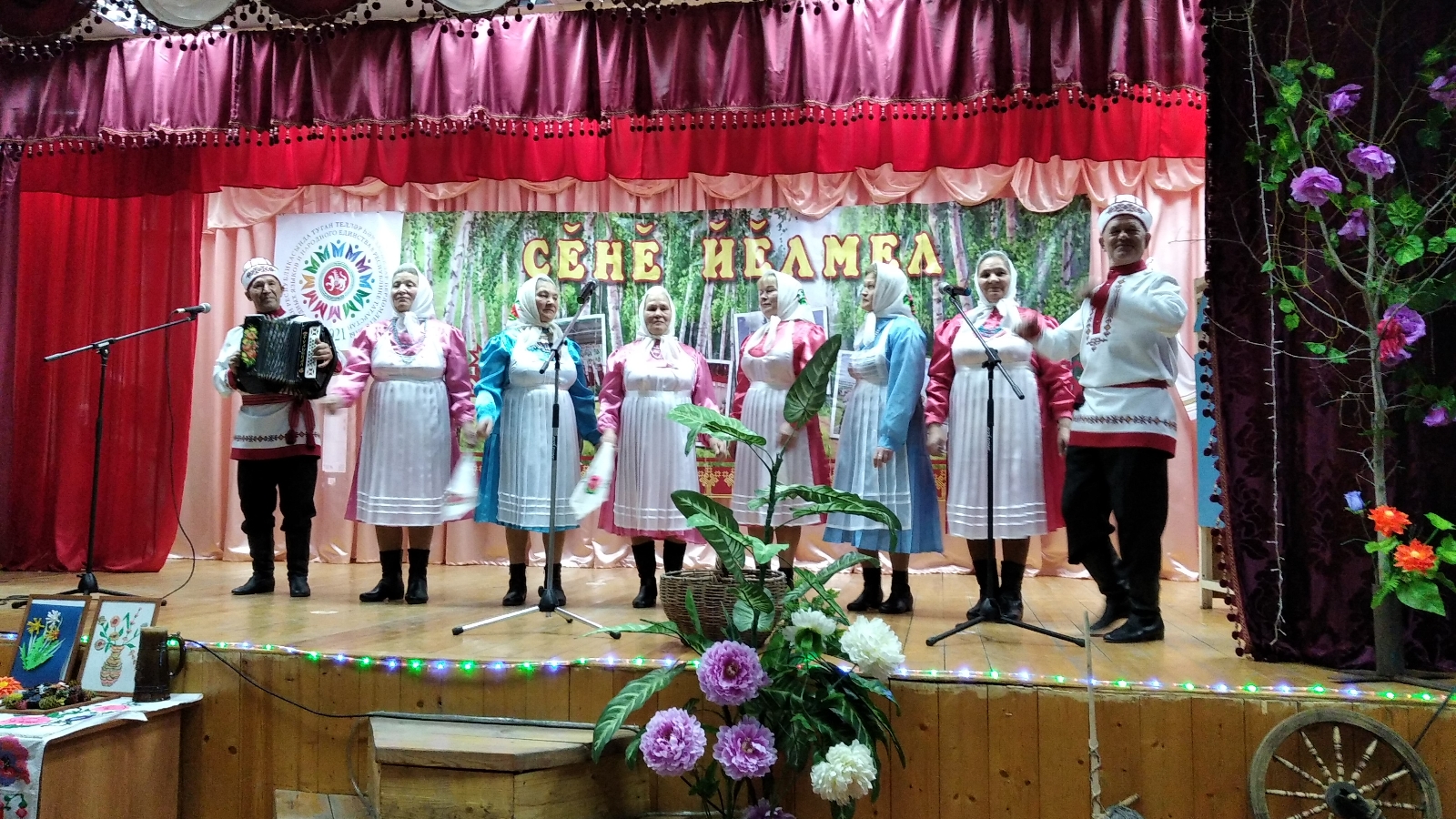 Начинает праздничный концерт одна их молодых артистов сцены Юлиана Шурбина со стихотворением « Сурхи хевел». Далее выходят на сцену участники чувашского фольклорного ансамбля «Йелме» под руководством гармониста Николая Мулеева. Они показали чувашский народный обычай «Петравка». С бурными аплодисментами приняли членов детских коллективов «Хевел» и «Шапчак». Самыми интересными моментами для зрителей были поставленные сценки участниками театрального кружка, в составе которого были Зинаида Денисова , Наталья Макарова, Валерий Ларионов, Ольга Архипова, Ирина Албутова и другие. Одним из серьезных выступлений было чтение отрывка патриотического стихотворения из пьесы «Нас было двое » в исполнении учащегося Новоильмовской средней школы Саши Ефимова. Культурная программа была насыщена выступлением с стихотворениями собственного сочинения молодых местных поэтов Петра Мулеева, Яны Изендеевой и Святослава Головина. Особенно ярким было выступление вокального коллектива «Калинушка», который является лауреатом 28 республиканского открытого фестиваля русской хоровой музыки А.В. Каткова под руководством директора СДК Наталии Макаровой. Девушки этого коллектива спели как чувашские так и русские народные песни. Своим обаянием и умелым исполнением песни «Один раз в году » из репертуара Анны Герман выделилась лауреат конкурсов народных и эстрадных песен Татьяна Евграфова. Настоящий талант гармониста был виден и высоко оценен зрителями в игре на гармони пенсионера-земляка Петра Афиногентова , ныне живущего в посёлке Русская Цильна Цильнинского района Ульяновской области. Он виртуозно сыграл как русские, чувашские и татарские мелодии.