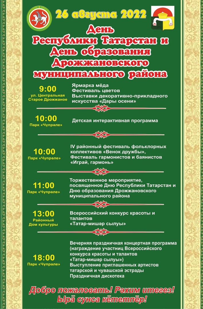 День Республики Татарстан и образования Дрожжановского района: программа празднования