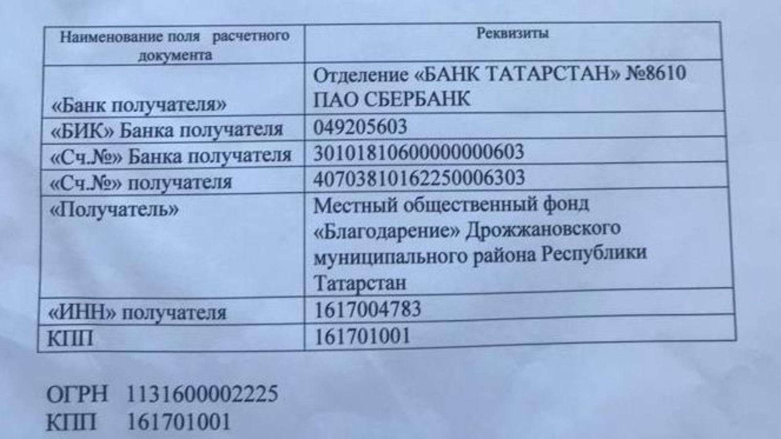 Местный общественый фонд "Благодарение" Дрожжановского муниципального района РТ.
