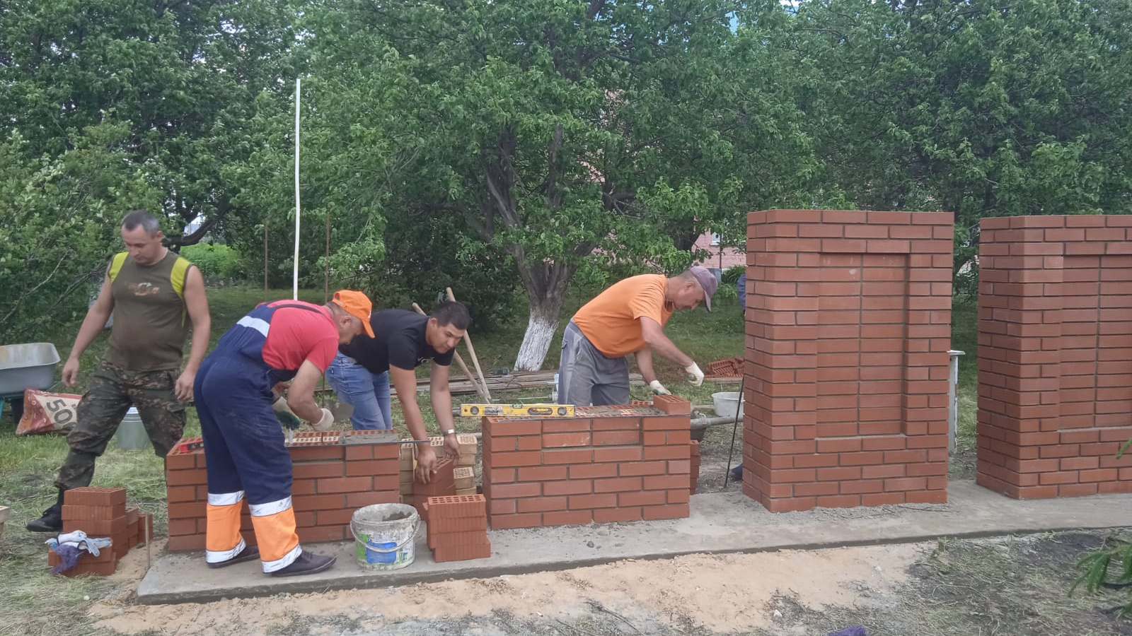 Непосредственную, активную практическую помощь оказал при строительстве фундамента и кирпичного сооружения участник специальный военной операции в Донбассе Александр Казаков. Им честь и хвала за оказанное внимание погибшим братьям по оружию.