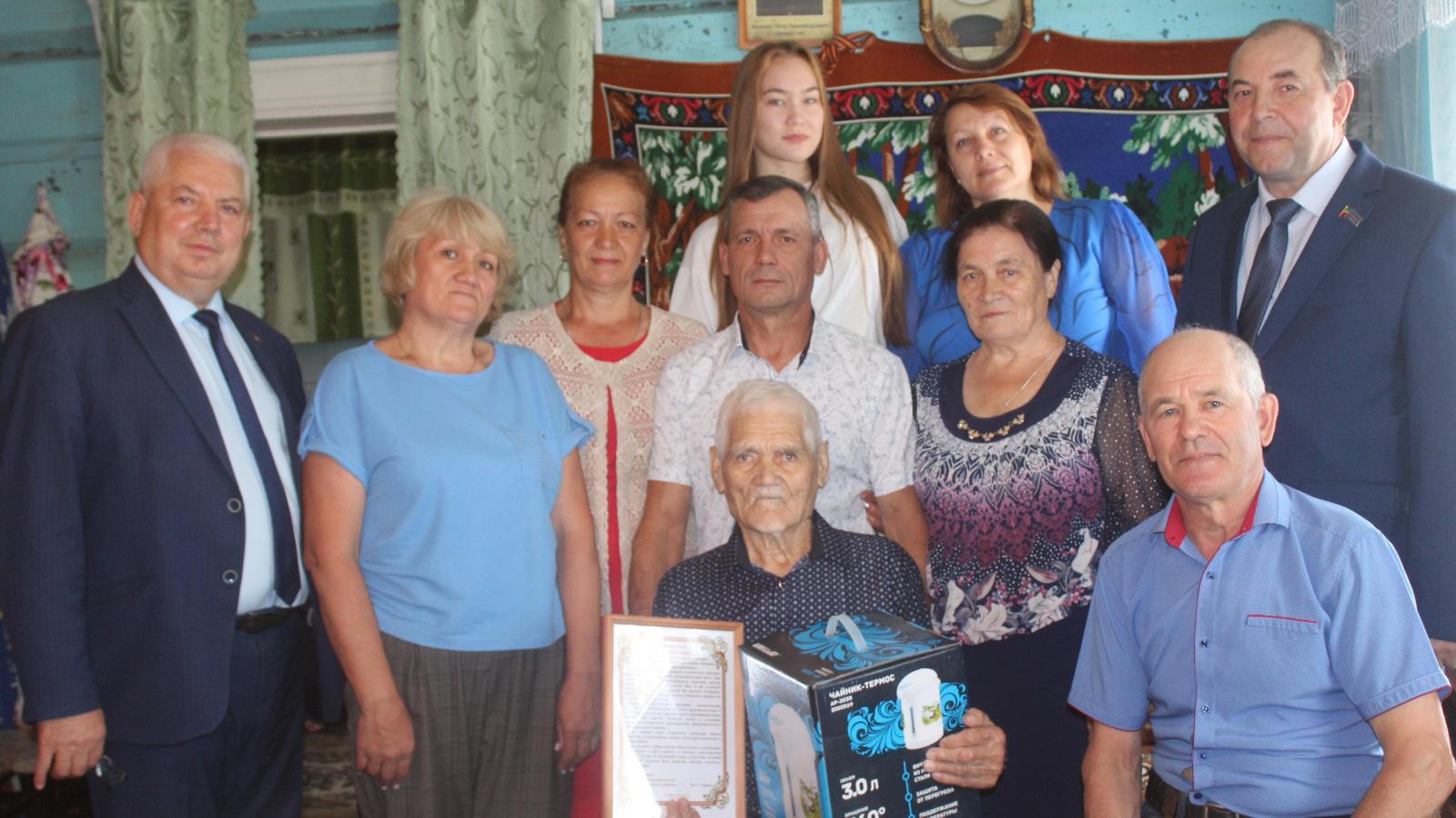 «Отец наш работал всю жизнь добросовестно, всем помогал. И нас, своих детей, они с мамой воспитали так же. Хотя и сами уже идём по „пятам“ отца, но до сих пор спрашиваем у него советы. Гордимся им, он интересуется с новостями района, читает газеты без очков. Он очень сентиментальный, вот сегодня очень переживал, когда ждал дорогих гостей», — рассказали дети.