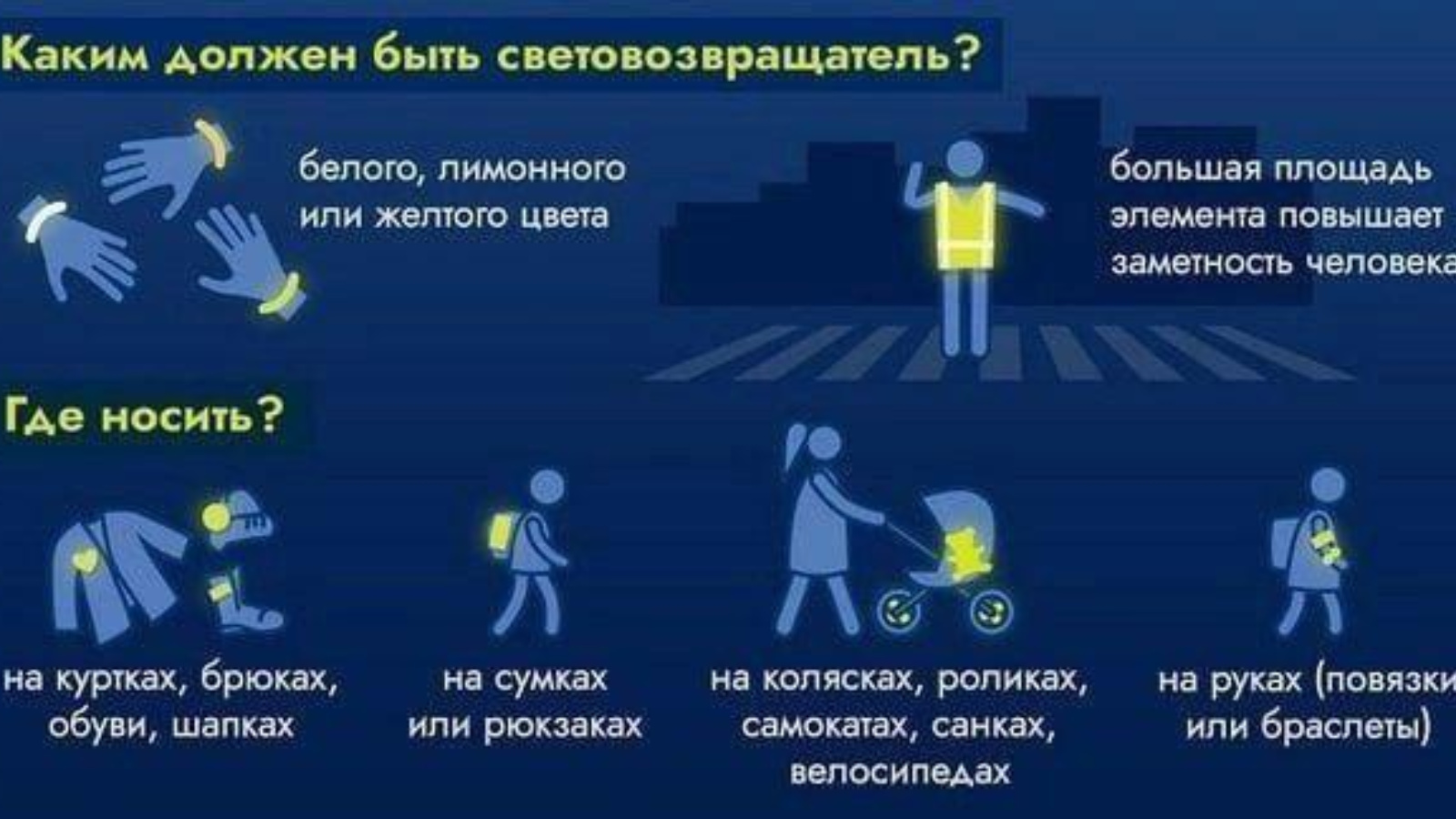 Госавтоинспекция Дрожжановского района опубликовала правила ношения световозвращателя.